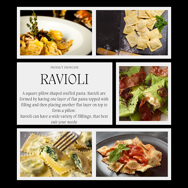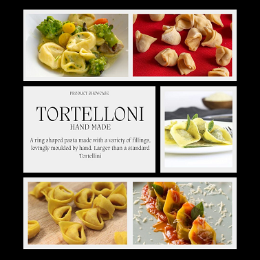 We offer a variety of filled pasta shapes from Ravioli to Tortelini and Panzerotti with various fillings